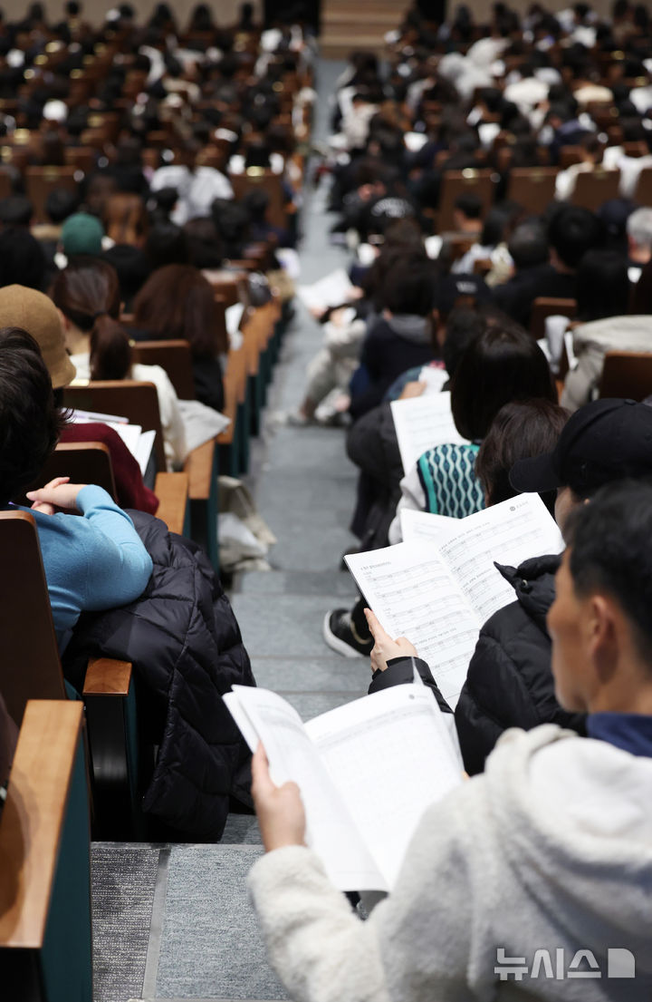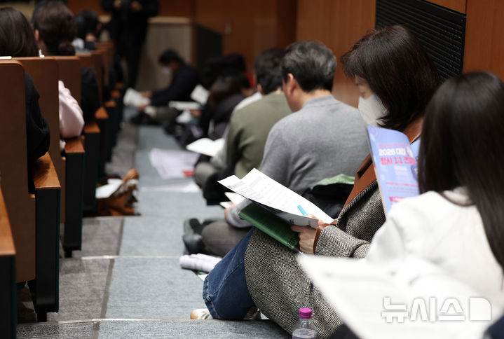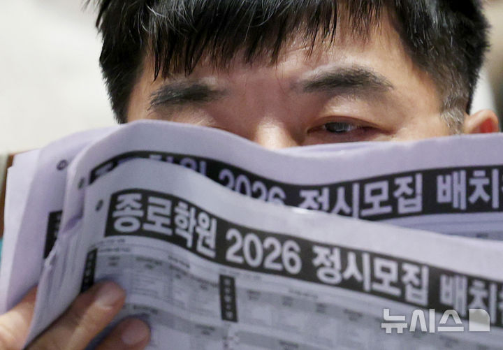 [서울=뉴시스]고범준 김진아 기자 = 7일 서울 종로구 성균관대학교 600주년 기념관에서 열린 종로학원 주최 2026 정시 합격 가능선 예측 및 지원전략 설명회에서 참석자들이 배치표를 살펴보고 있다.